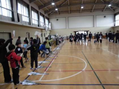 まずは小学生がたてわりグループで集合し,中学生を待ち構えます!