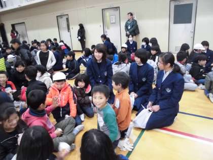 清掃活動終了後,もう一度体育館に集まり,活動のふり返りをします。