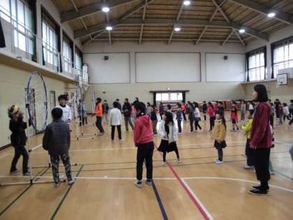 運動委員会企画の「フリースロー大会」が続いています。今日は1年生です。3クラスでの対決なので,さらにもり上がっています。