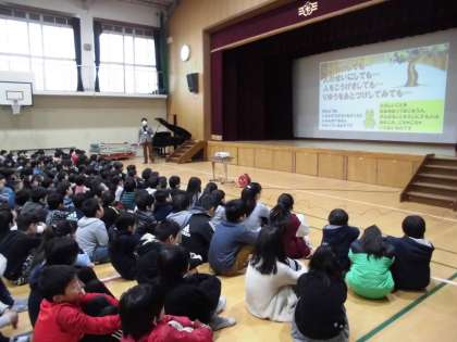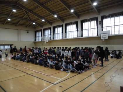 2月の朝会を行いました。今回も自分たちできっちり集まり,きれいに整列を済ませました。