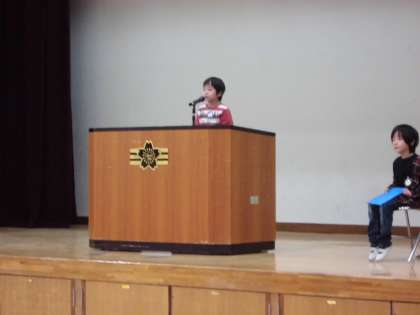 全校児童の前での発表なので,きっととても緊張したことでしょう。それでも,最後まで堂々と発表することができました。大変立派でした。