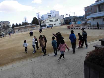 運動場・体育館・各教室に分かれ,それぞれのグループで楽しく遊びました。
