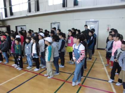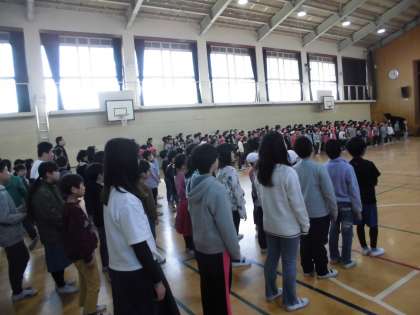 全校で練習するのは初めてでしたが,きれいな声が響きます。本番が楽しみになりました。