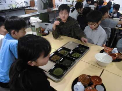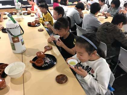 どのお話にも,とても興味をもって聞いていました。お茶の入れ方を教えていただき,実際に煎茶を入れました。自分で入れたお茶は特別ですね。