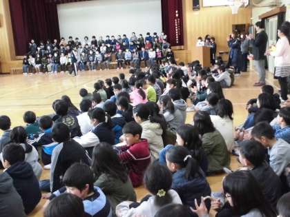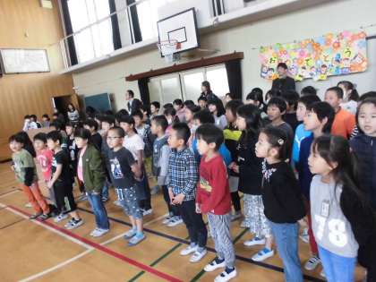 先日の児童集会でも練習しましたが,今日の声はその時と全く響きが違うように感じます。