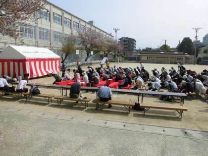 今日は朝から運動場にて,社会福祉協議会主催のお花見会が行われました。