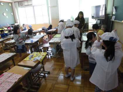 1年生にとっては,まさに「初めての給食」です。