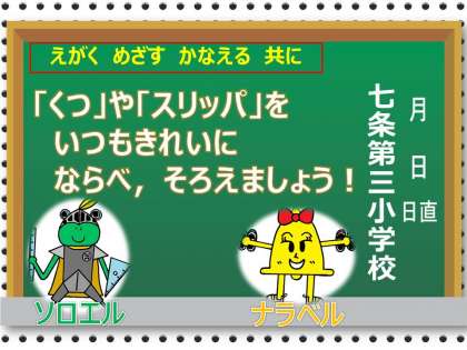 先ほどの記事で,「ダマロー」と「アルコーネ」の話題に触れましたが,七条第三小学校に新しいキャラクターが仲間入りしました。