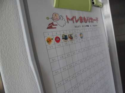 また,今年度も「トイレ守りカード」を進めています。教職員が通った時,きれいにそろっているとシールやはんこがもらえます。