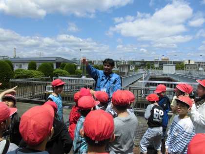 4年生の社会科の「使った水のゆくえ」の学習で,鳥羽水環境保全センターへ見学に行きました。わたしたちが使って汚れた水がどのようにして処理されていくのか,下水道にはどんな役割があるのかなどを学習しました。施設の中を見学し,実際に水がきれいになっていく過程を見ることができました。
