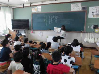 担任以外の先生の読み聞かせで,子どもたちも本にくぎ付けになっています。