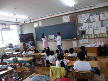 今日は1年生のみ,図書ボランティアさんによる読み聞かせでした。