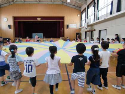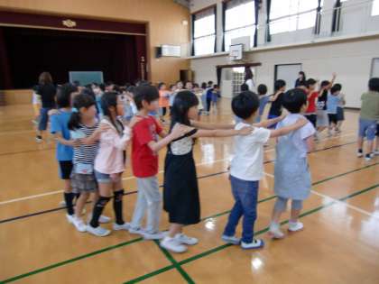 2年生は,1日(金)にさくら学級との交流を楽しみました。さくら学級のお友だちの自己紹介を聞いた後に,一緒に「貨物列車」や「バルーン」をしました。子どもたちの振り返りには,「もっと一緒に遊びたいな。」や「もっとさくら学級の友だちのことを知りたいな。」という声がありました。