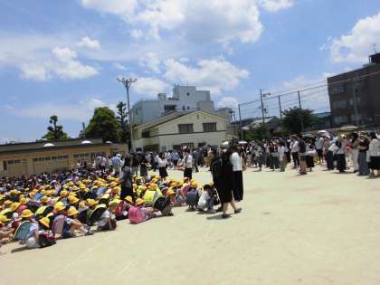 日曜参観の4校時は,「避難訓練・引き渡し訓練」でした。