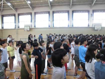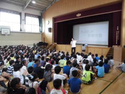 今月の「七三ソング」は京都市歌です。すでにそうじの時間にも流れていますが,全校で集まって練習しました。