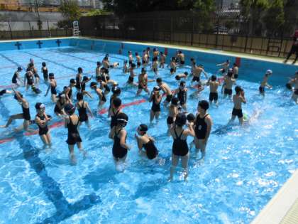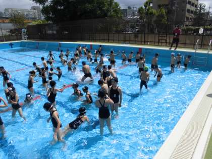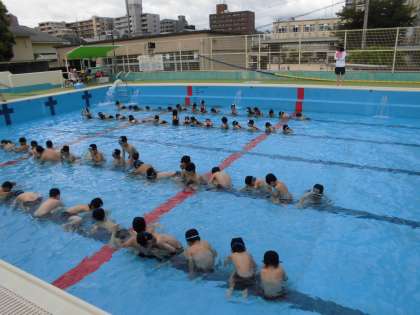水泳学習が始まって3日,今日で1・2年生の水遊び期間が終了します。明日からは水位も上がり,3年生以上の水泳学習が始まります。