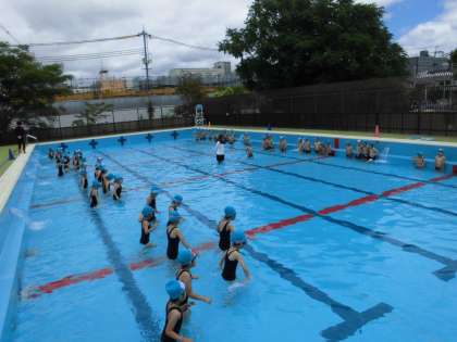 1年生も小学校での水泳学習を始めて3日です。