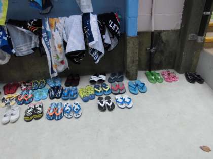何もかもが初めてですので,着替えや準備,プールでのきまりや約束など,1つずつ覚えていっています。
