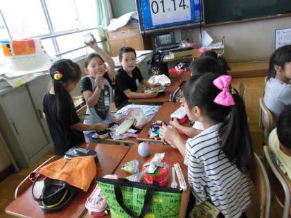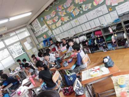 お昼の時間に教室をのぞくと,うれしそうにお弁当を見せてくれました。