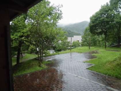 画像では分かりにくいかもしれませんが,活動にとっては不便な雨も,自然にとっては大切な恵みなのだろうと思わせるぐらい,潤いを得た山々,木々の緑は鮮やかです。