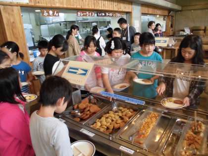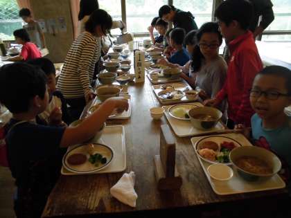 午前中の体を使った「協力」「挑戦」で,おなかのすいた子も多かったようです。