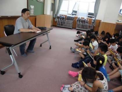 今日は,七条商店街から岸田さんに来ていただき,7月に行うサマーナイトフェスティバルについてのお話を聞かせていただきました。なぜ,サマーナイトフェスティバルが始まったのか,また商店街の方はどんな願いをもっておられるのかなど,たくさんのことを教えていただきました。