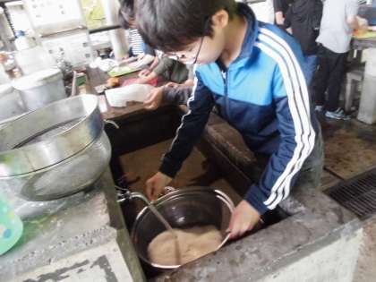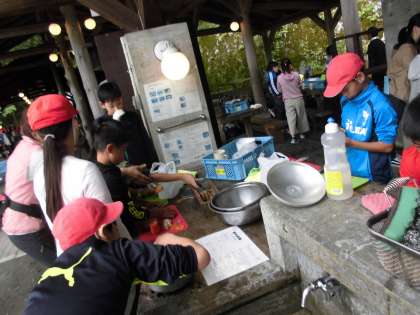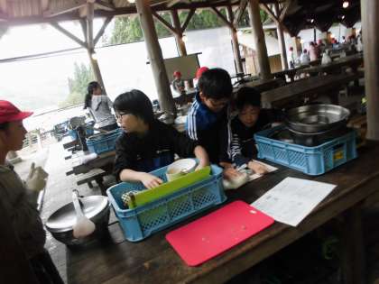 食材係やごはん係は,野菜を切ったり,お米を洗ったりして準備を進めます。