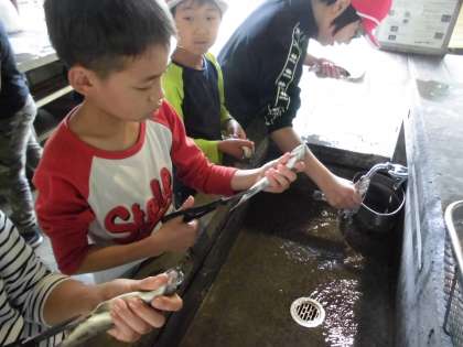 魚の血や内臓にも触れながらの作業ですが,さっきまで生きていたものですから,「命」について実感することができたことでしょう。