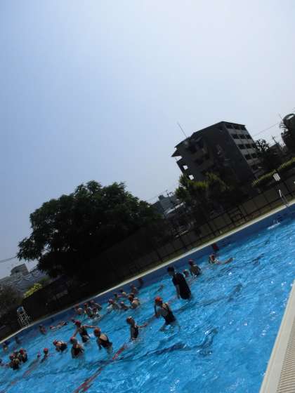 今日は朝からよく晴れています。気温も上がって,絶好のプール日和です!