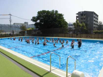 4年生も朝から気持ちよさそうにプールで活動しています。