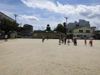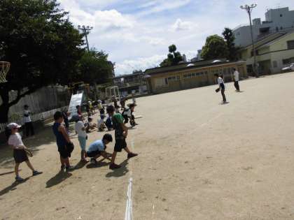 大変暑いですが,たくさんの子どもが集まり,汗を流しています。前回に続けて参加している子が多く,どんどん上達していることを実感することができます。