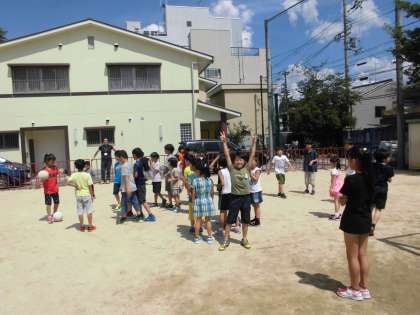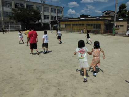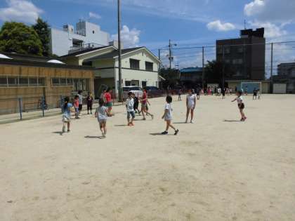 運動場では,暑さなど気にすることなく,仲よく思い切り遊びました。