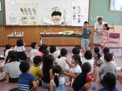 上手にできている歯磨き名人がみんなの前で実践してくれました。