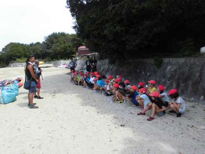 特にシーカヤックを楽しみにしている子どもが多かったので,ワクワクしながら砂浜に向かいました。