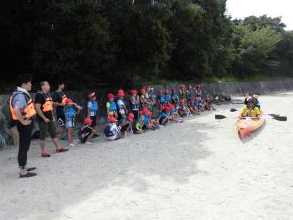 昼食を終えると,早速シーカヤック体験&砂浜遊びです。