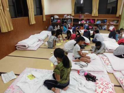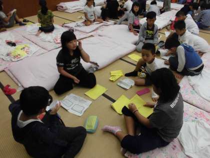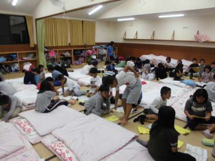 キャンプファイヤーの時に少し気分が悪くなった子もいましたが,無事に2日目のプログラムもすべて終了し,あとはゆっくり休むだけです。