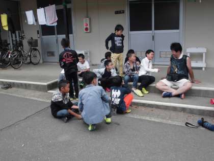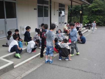 リーダー室前で校長先生とゲームを楽しんでいる子たちもいました。こういう時間もいいものですね。
