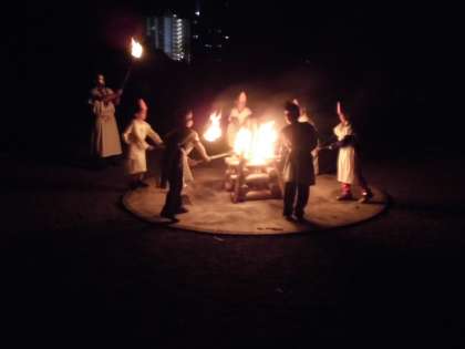 火の神が6人の火の子にひとつずつ火を授けていくのですが,最後に会場は笑いにあふれていました。