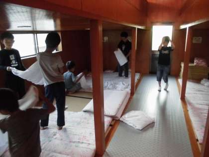 休養十分なので,起床して間もなく,寝具の片づけや荷物の整理をテキパキ行いました。