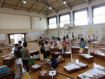 臨時休校のため,当初の予定より変更していますが,本日より「夏休み自由研究展」を開催しております。すでに展示を終え,9時30分よりオープンしています。