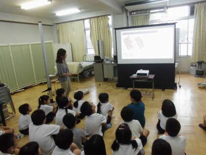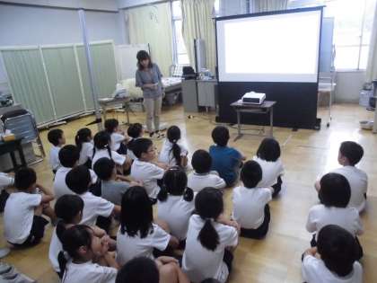 プレゼンを活用して,1年生にもわかりやすいように説明しました。