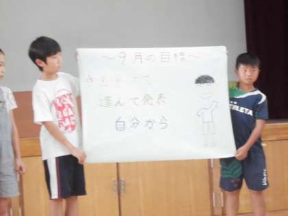 児童会が考えている「毎月の目標」です。9月の目標は次のように決定しました。
