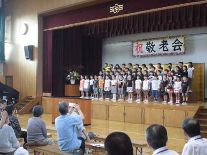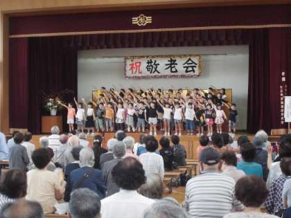 敬老会式典に2年生児童が参加し,歌を披露しました。