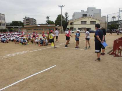実際に競技も行いましたが,やはりもり上がりますね!!見ている子どもたちも本番さながらの応援をしています。