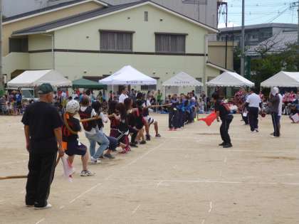 本校児童も,大人に混じって,普段の学校生活とは一味違雰囲気の中,楽しそうに体育祭に参加しています。