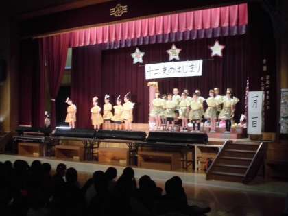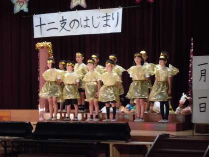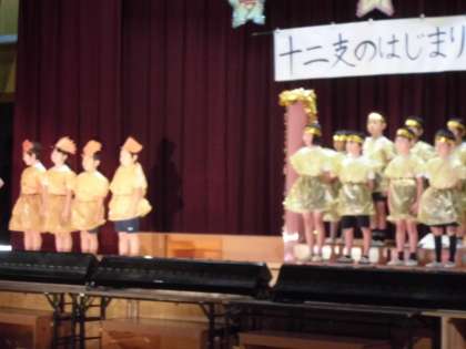 2年生の劇『十二支のはじまり』から演目がスタートしています。大きな声ではっきりとセリフを言う子どもたち。その姿から,これまでの練習の成果がうかがえます。