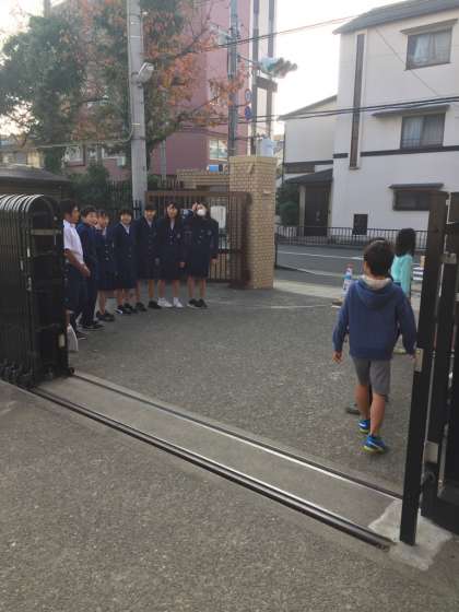 11月28日(水)です。今朝も中学2年生が「あいさつ運動」に来ています。
