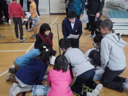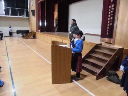 児童会の司会で「任務開始式」が始まり,中学生のあいさつのあとグループで活動内容の確認をして出発しました。