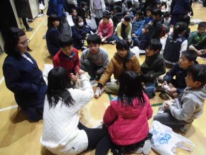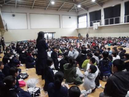 清掃活動を終えて,体育館で「任務完了式」を行いました。