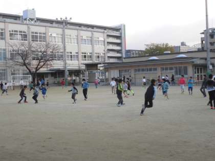 登校するとすぐ運動場に出て元気に遊ぶ子が多くいました。